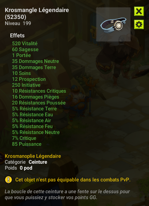 - Panoplie complète (Masque, Cape, Ceinture, Amulette, Bottes)